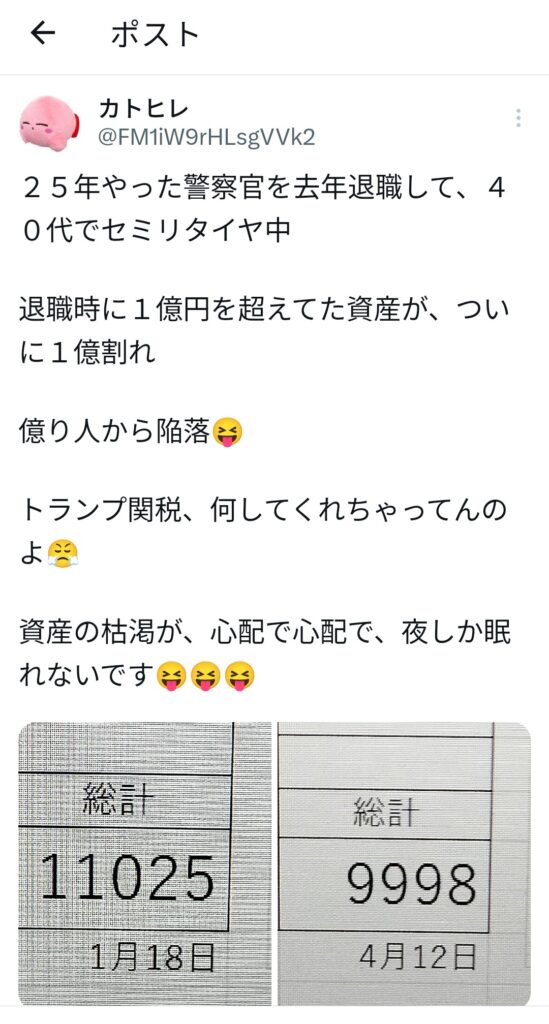 これによって、私の資産額も一時1億円を割り込むところまで縮小しました。