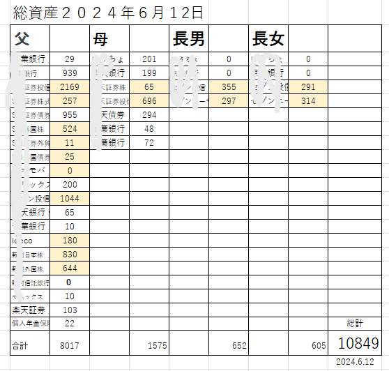 警察から退職金をもらった後、2024年6月の資産額は1億849万円でした。