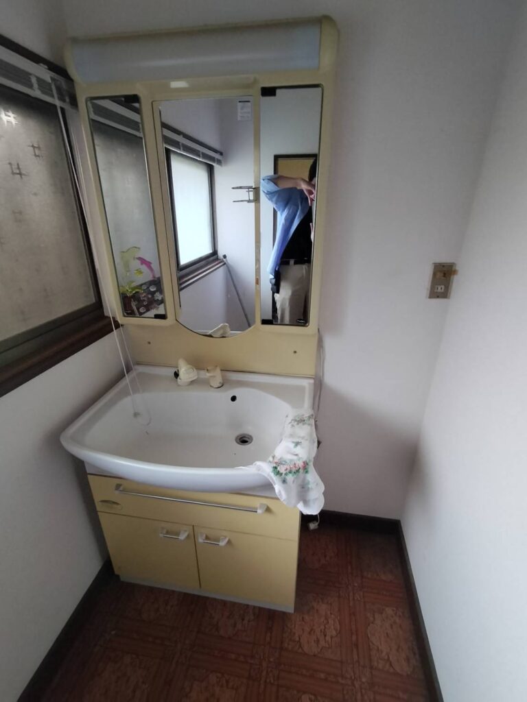 洗面化粧台は何とか使えるだろうと思っていましたが、水漏れが判明。
